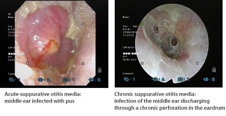 - Associated with intense headaches, sometimes with hearing loss and ear discharge.